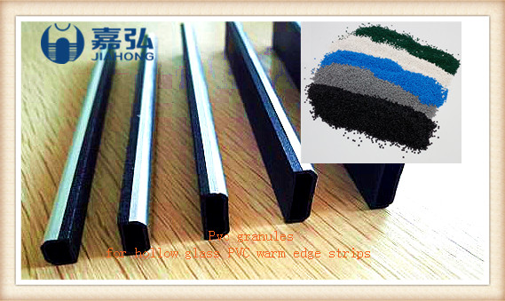 The technical problem solved by the utility model is to overcome the defect of poor sealing performance of the prior art and provide a PVC warm edge strip (special Pvc granules) for insulating glass with good sealing performance. The PVC warm edge strip (special Pvc granules) for insulating glass with good sealing performance has the characteristics of good sealing performance and the like.