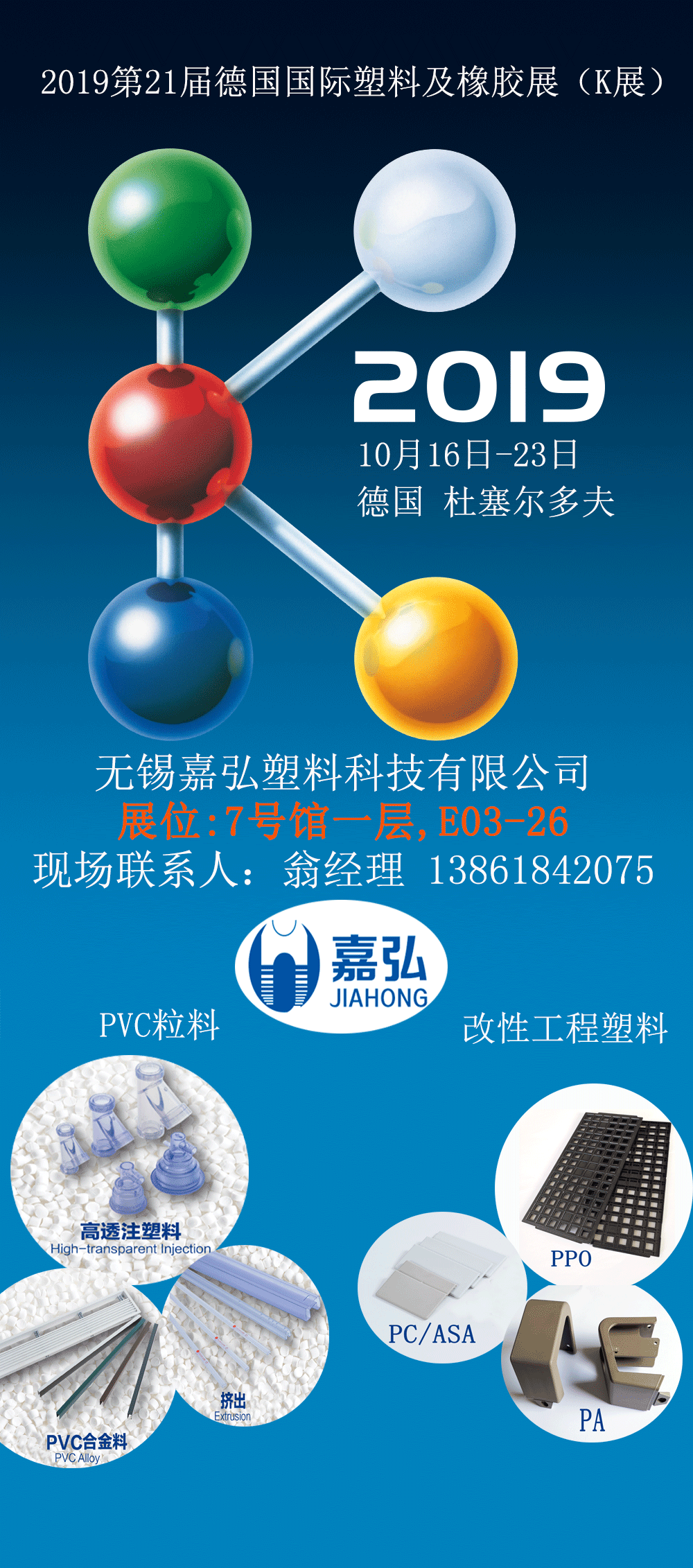 嘉弘塑料的展位號(hào)為7號(hào)館一層E03-26,歡迎各界新老客戶蒞臨指導(dǎo)!