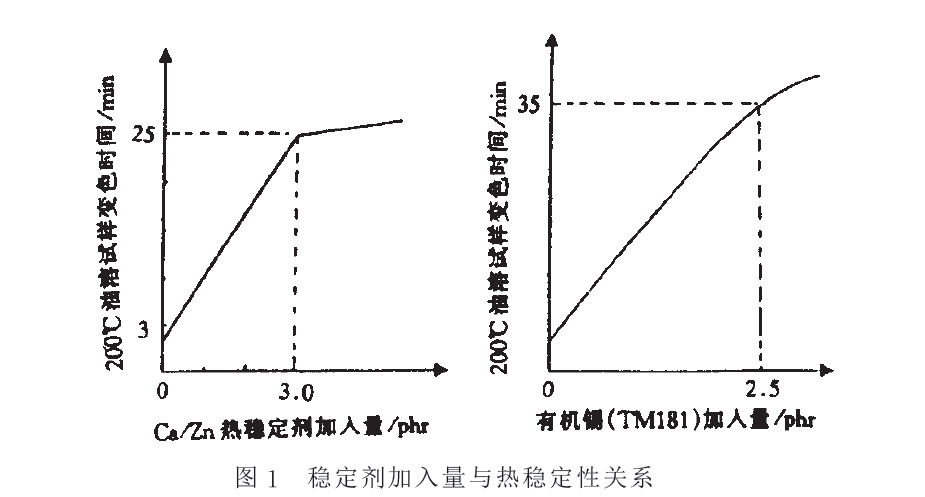 穩(wěn)定劑加入量與熱穩(wěn)定性的關系曲線圖如下: