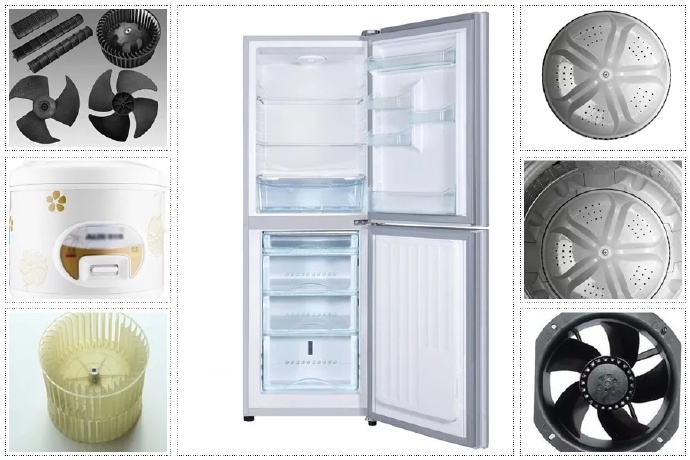 一、玻纖增強(qiáng)改性 PP : 向PP原料中添加玻璃纖維,應(yīng)用 于 制作冰箱、空調(diào)等制冷機(jī)器中的軸流風(fēng)扇和貫流風(fēng)扇